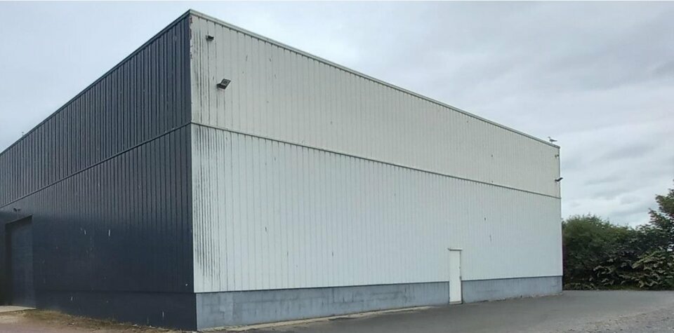 MONDEVILLE : Entrepôt d'environ 500m ², 2 portes sectionnelles électriques,dalle béton.HSP 6 m