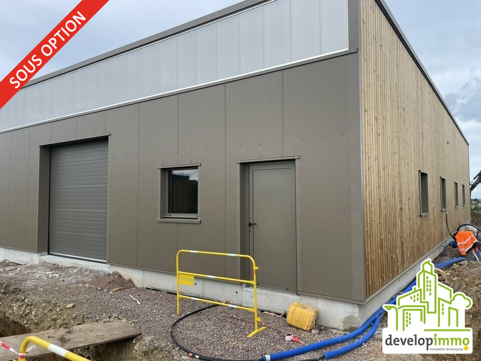 Dans un parc PME PMI en cours de construction, un local d'activité d'environ 110 m², porte sectionnelle électrique de 3 x 3 m, bardage double peau, charpente bois, toiture bac acier isolé et dalle béton.