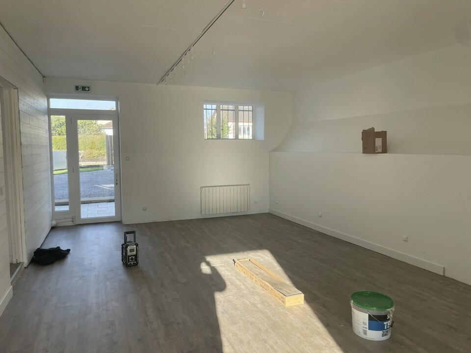 Local commercial refait à neux d'environ 80m2 avec belle visibilité en angle de rue, comprenant 2 grandes pièces, un espace kitchnette, sanitaire et une cour privative,